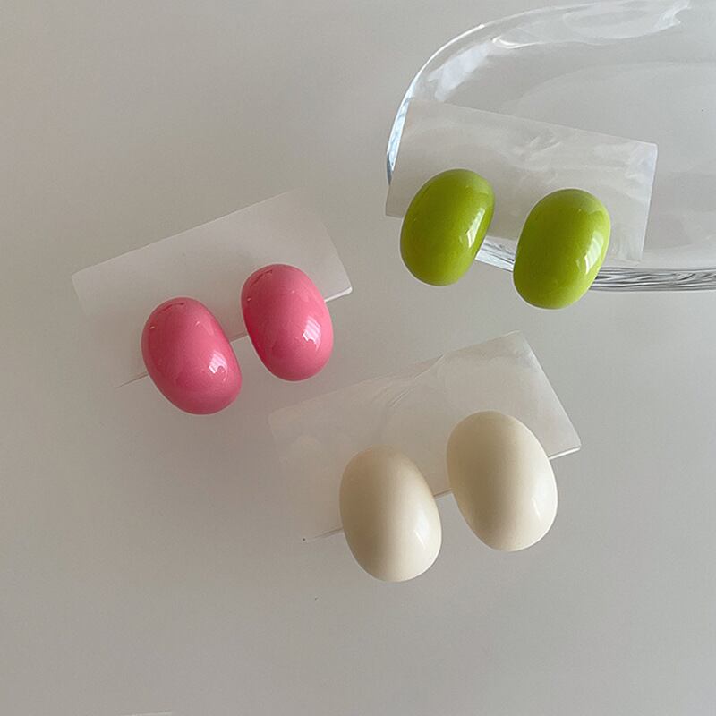 送料無料 KAITIN キャンディーカラーのラウンド豆イヤリング女性シンプルな多用途ソリッドカラーのスタッドイヤリングミニマリズムジュエリー レッド 指輪 AE88788776502485690