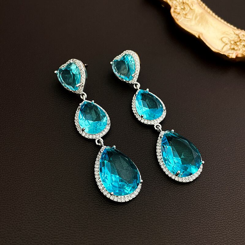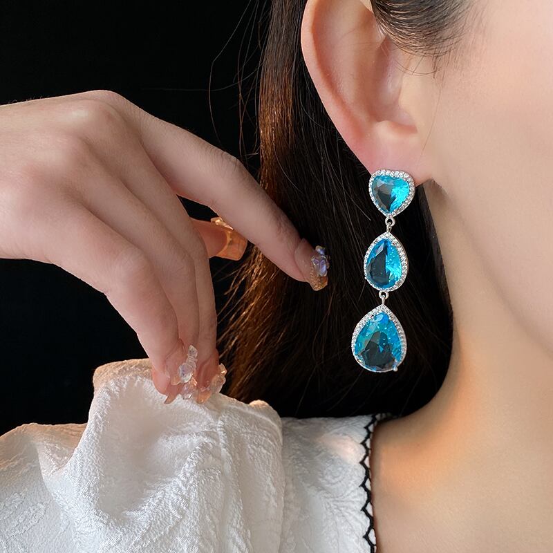 送料無料 KAITIN ブルージルコンハートイヤリング女性 Y2k チャームイヤリング高級アクセサリーガールパーティーギフト 指輪 AE88788755356814387