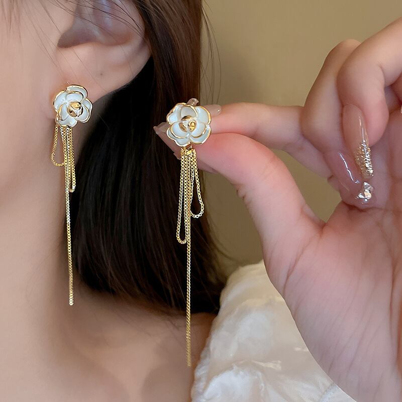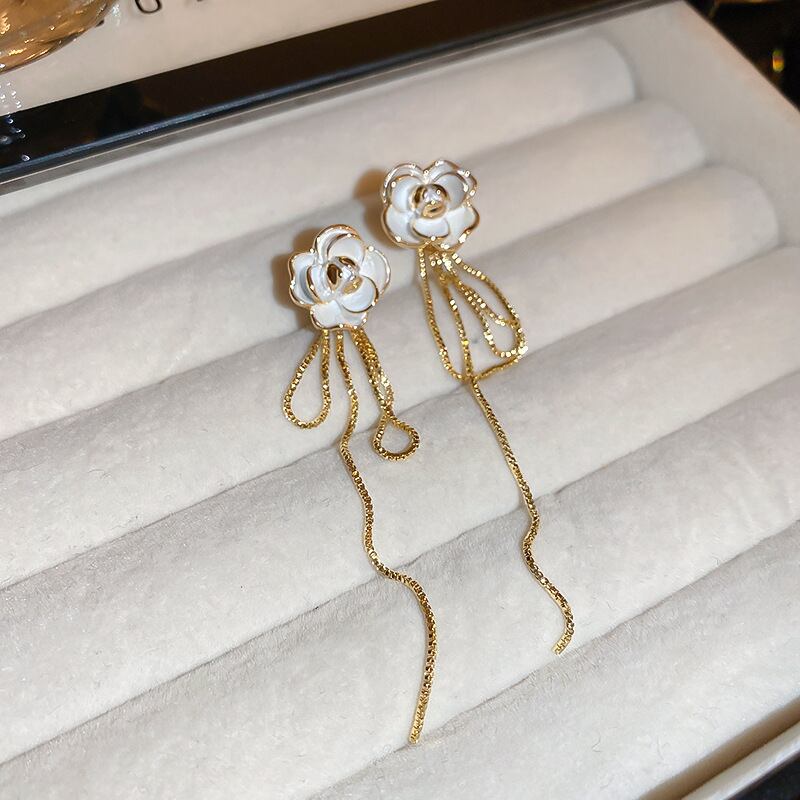 送料無料 KAITIN ホワイトフラワー女性のイヤリング 2023 ロングテルイヤリング絶妙なアクセサリー女性ギフト 指輪 フラワーデザイン AE88788734502231004