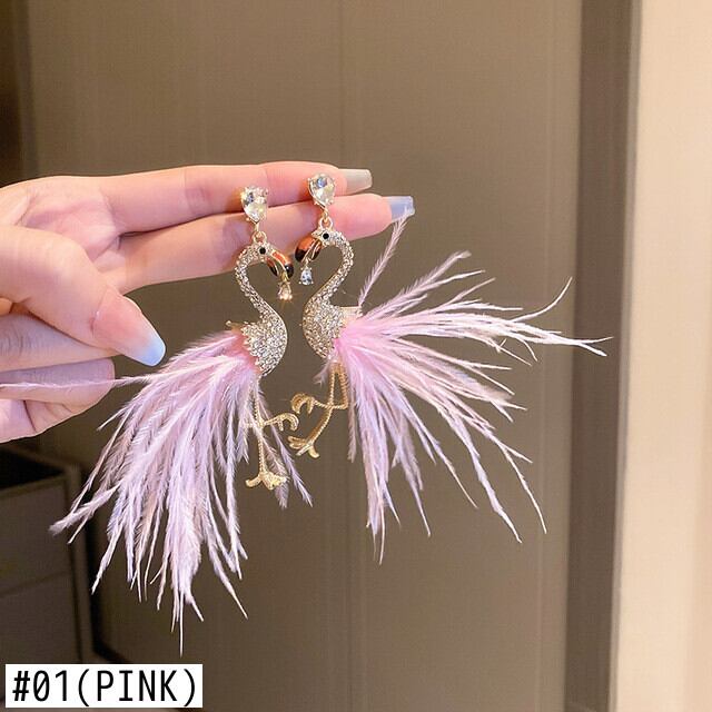 送料無料 KAITIN 非対称モザイククリスタル鳥イヤリング女性ピンクフェザーラインストーンブラブライヤリングジュエリー 指輪 AE88788771249918760