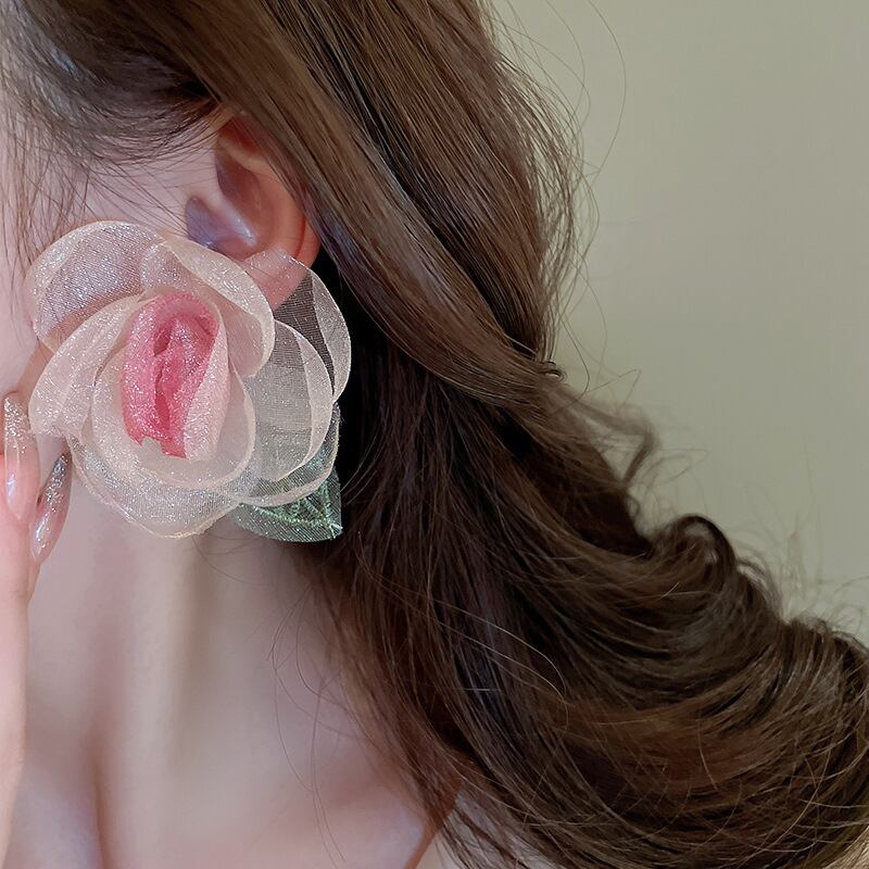 送料無料 KAITIN シルバー針オーガンザフラワーリーフイヤリング女性クリエイティブ風イヤリング気質イヤリング 指輪 フラワーデザイン 銀 AE88788769150717451