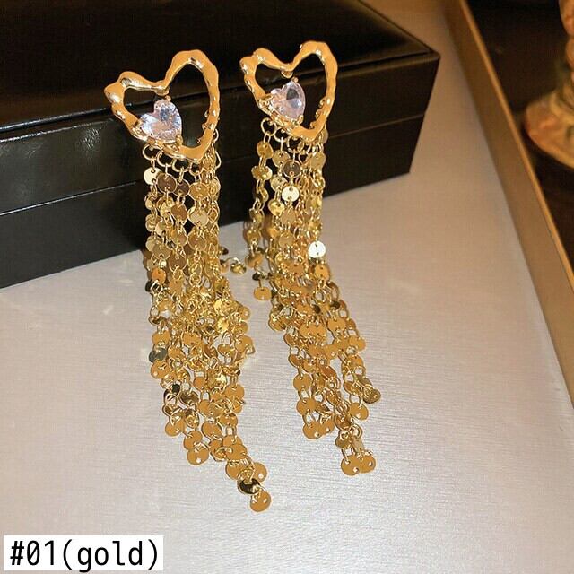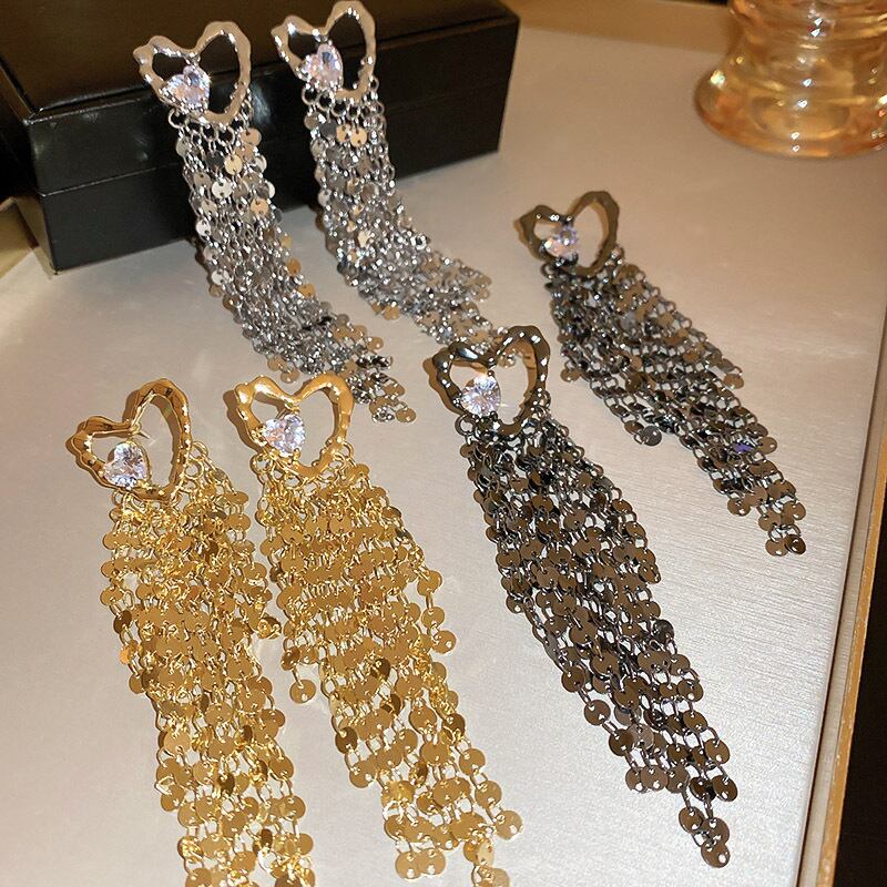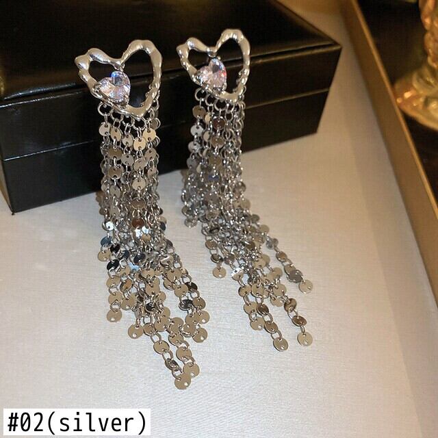 送料無料 KAITIN ジルコンイヤリング女性パーソナライズハートスパンコールロング女性 Tel イヤリングジュエリー 2023 指輪 AE88788764153214047
