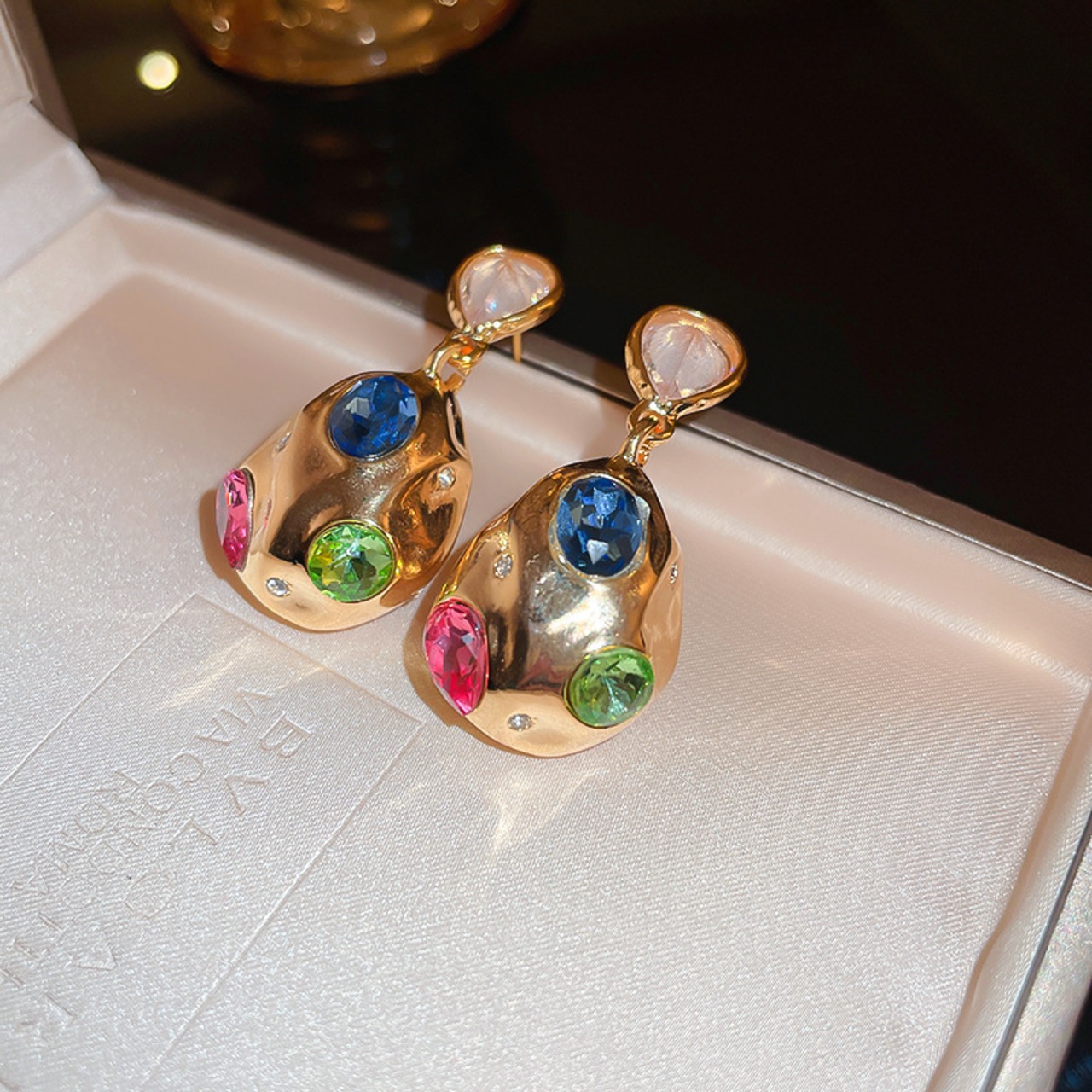 送料無料 KAITIN シルバー象嵌ラインストーンウォーターイヤリングクリエイティブイヤリング気質中世イヤリング 指輪 銀 AE88788714244123046