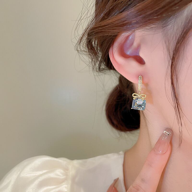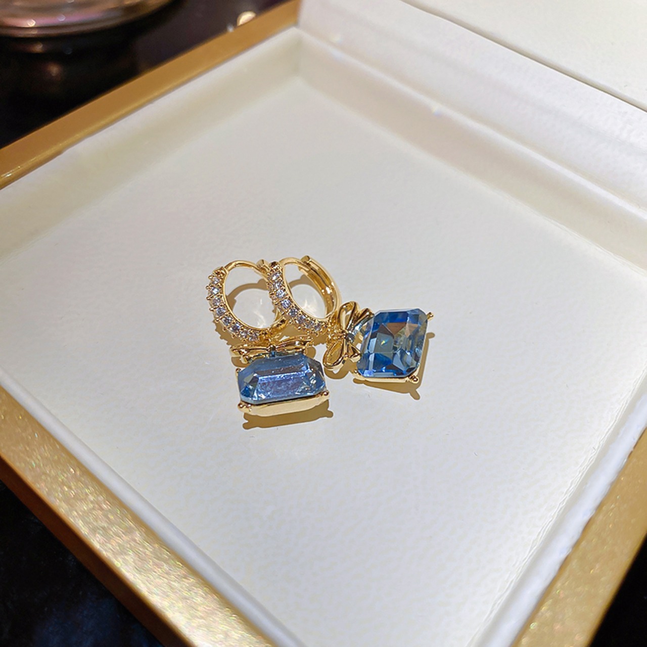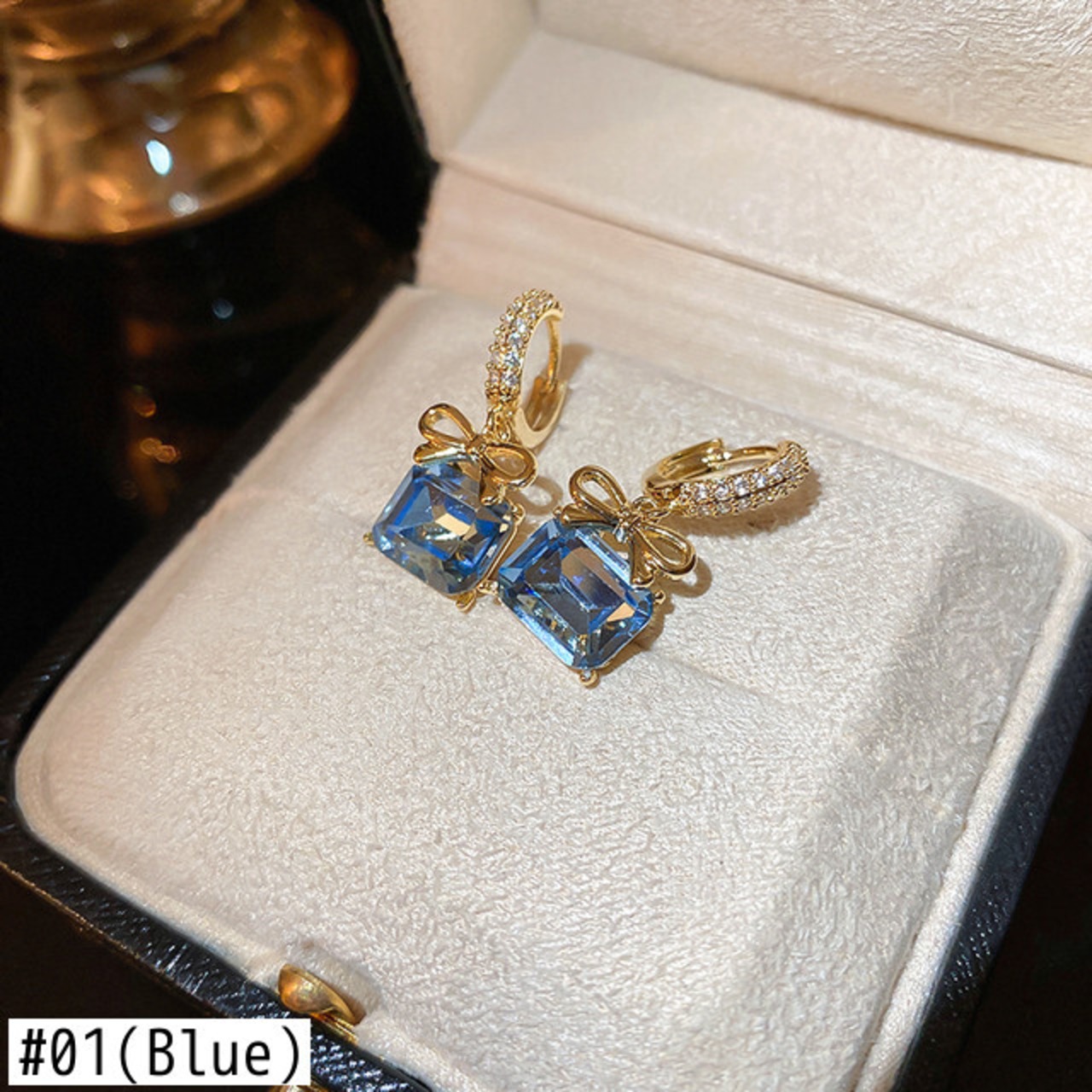 送料無料 Clic ゴールドメッキフープイヤリング小さな蝶結びスクエアキュービックジルコニアピアスイヤリング高級イヤーアクセサリーガールズパーティー リボン 指輪 スクウェア 風信子石 AE88788766551500232