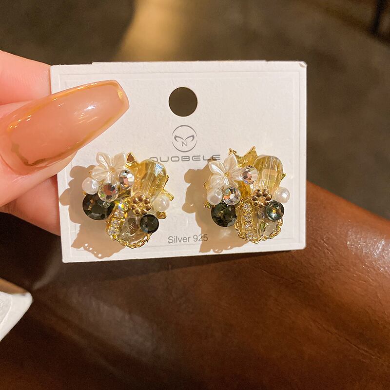 送料無料 ヴィンテージクリスタルフラワースタッドピアス女性甘い気質 CZ 光沢のあるイヤリングかわいいガールティーンパーティージュエリー 大人ガーリー スウィート キュート カジュアル 指輪 フラワーデザイン ビンテージ AE88788762035578520