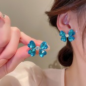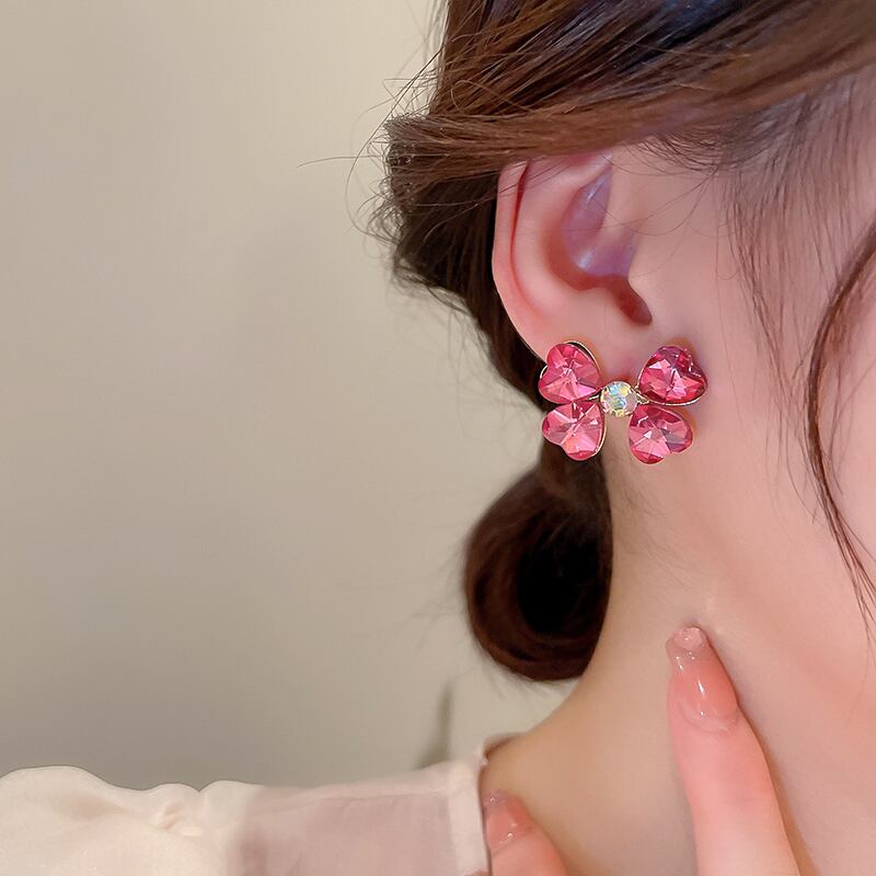 送料無料 かわいいハート蝶結びスタッドピアスピンクブルー光沢のあるラインストーンピアス合金アクセサリーガールズパーティー無料 リボン イヤリング 大人ガーリー スウィート キュート カジュアル リング 指輪 AE88788748732672000