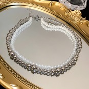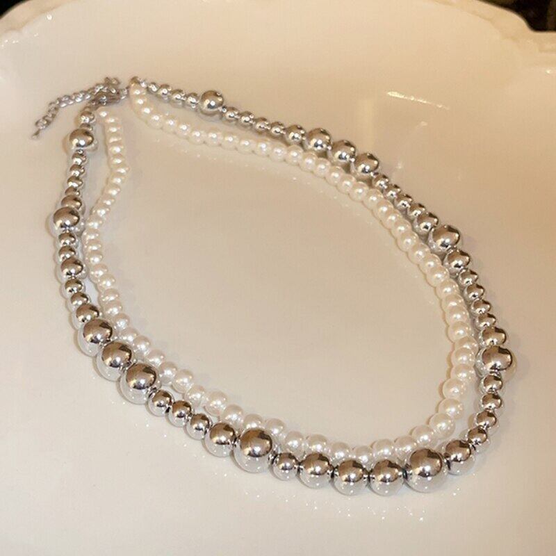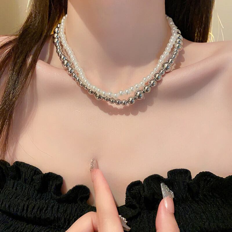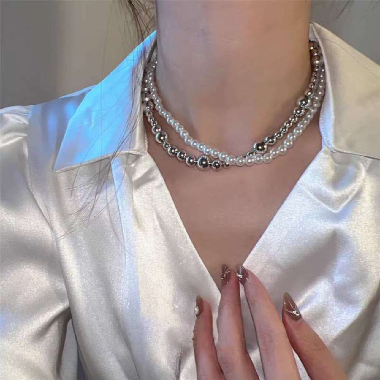 送料無料 KAITIN パールシルバーメタリックネックレス女性首輪チェーンミニマリスト装飾高級ジュエリー 2023 で レース 真珠 銀 AE88788724502640415