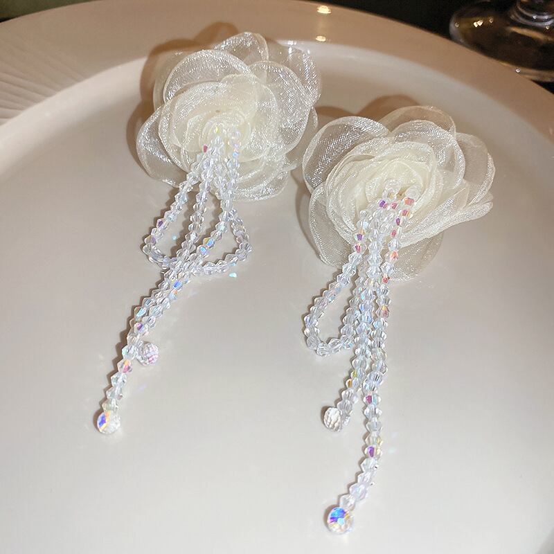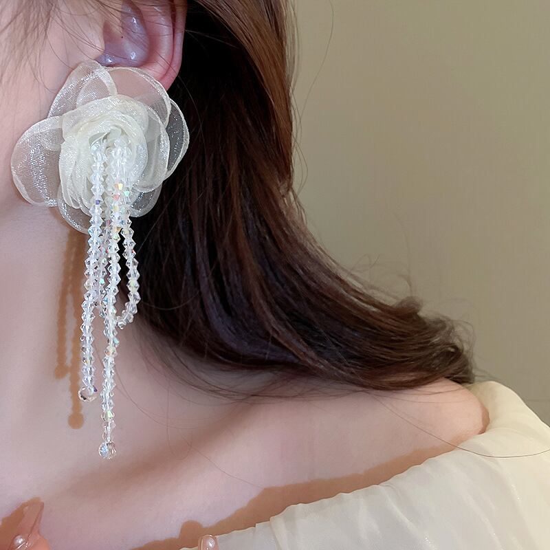 送料無料 KAITIN 生地フラワーペンダントセットシフォンクリスタル Tel イヤリング女性イヤリング気質ジュエリー 指輪 フラワーデザイン AE88788728085979607