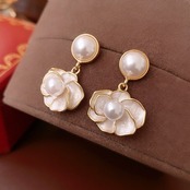 送料無料 KAITIN パールフラワーイヤリング女性フレンチライト高級イヤリングゴールドメッキジュエリー 真珠 指輪 フラワーデザイン AE88788751303042366