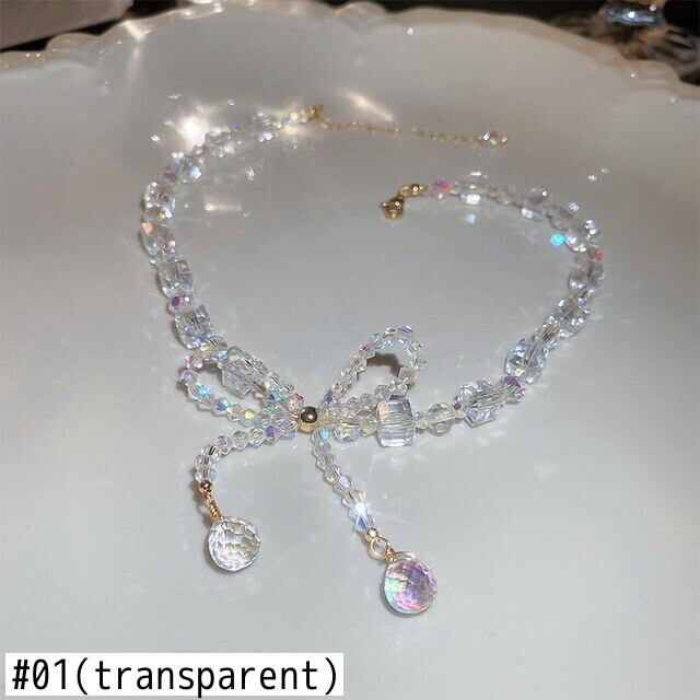 送料無料 KAITIN 夏クリスタルボウネックレス女性ライト高級鎖骨チェーン気質-グレードセンスネックレス リボン レース サマー 夏物 AE88788715345363397