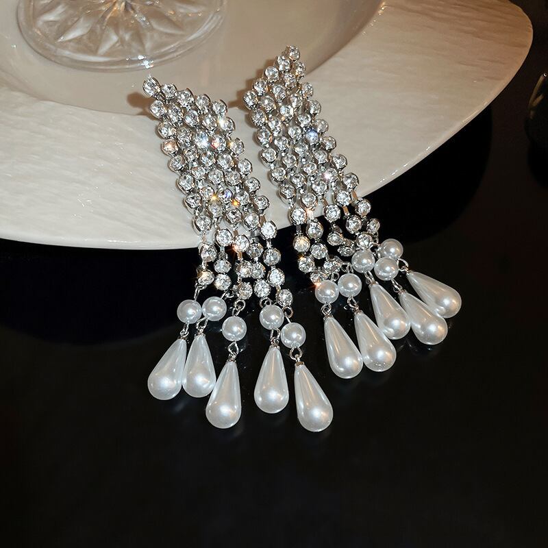 送料無料 KAITIN ヴィンテージロングテルパールペンダントイヤリング Wmen 高級多層クリスタルイヤリングパーティージュエリー 真珠 指輪 ビンテージ AE88788771355572300