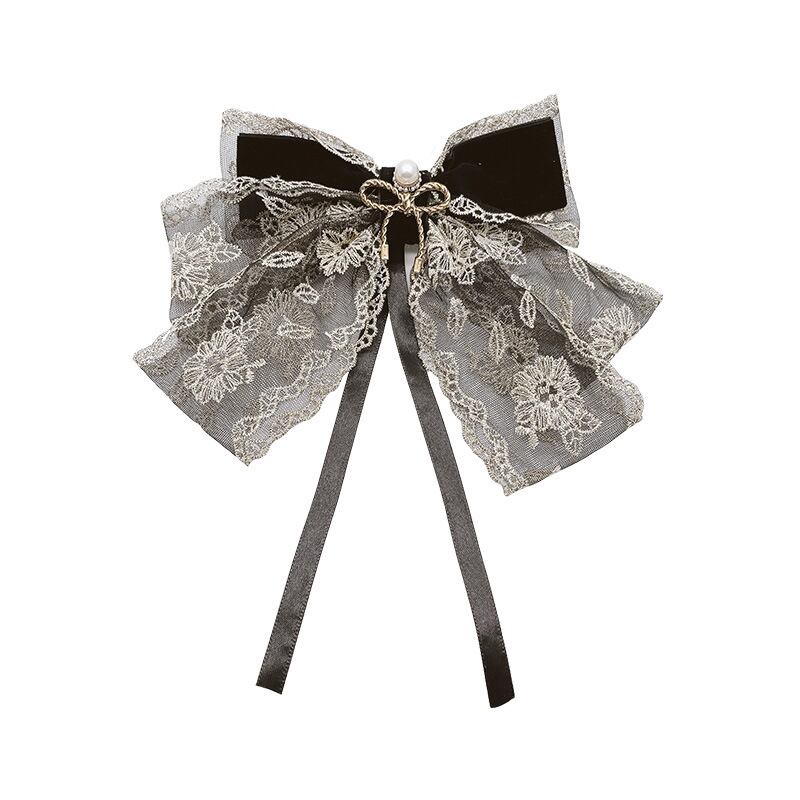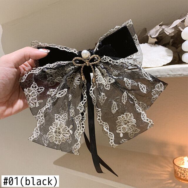 送料無料 KAITIN 誇張された人格ヘアピンパールレースガーゼ弓クリップ帽子気質ヘアアクセサリー リボン 真珠 AE88788731441943859