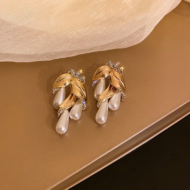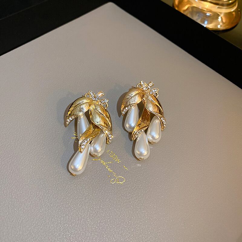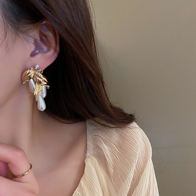 送料無料 金葉天然真珠ブラブライヤリング女性ガールティーンパールウォーターイヤリング Clic 2022 モダンガールスイートジュエリー 大人ガーリー スウィート キュート カジュアル ナチュラル 指輪 AE88788744974776564