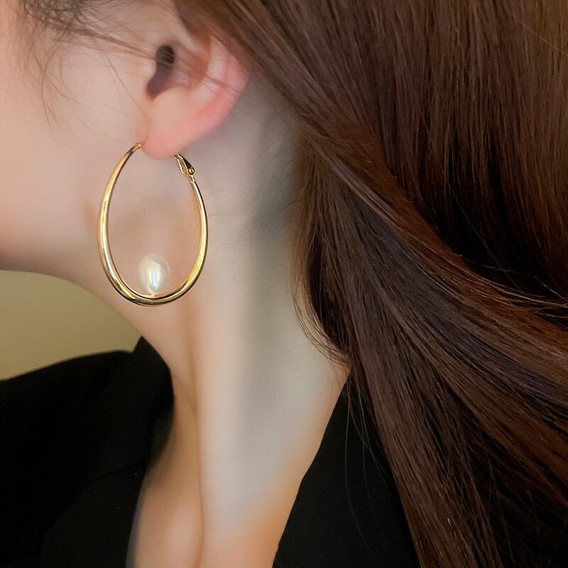 送料無料 KAITIN ゴールドステンレス鋼のイヤリング女性パールプレーンリングイヤリングシンプルで有能な春多用途ジュエリー スプリング 春物 指輪 真珠 AE88788772503960044