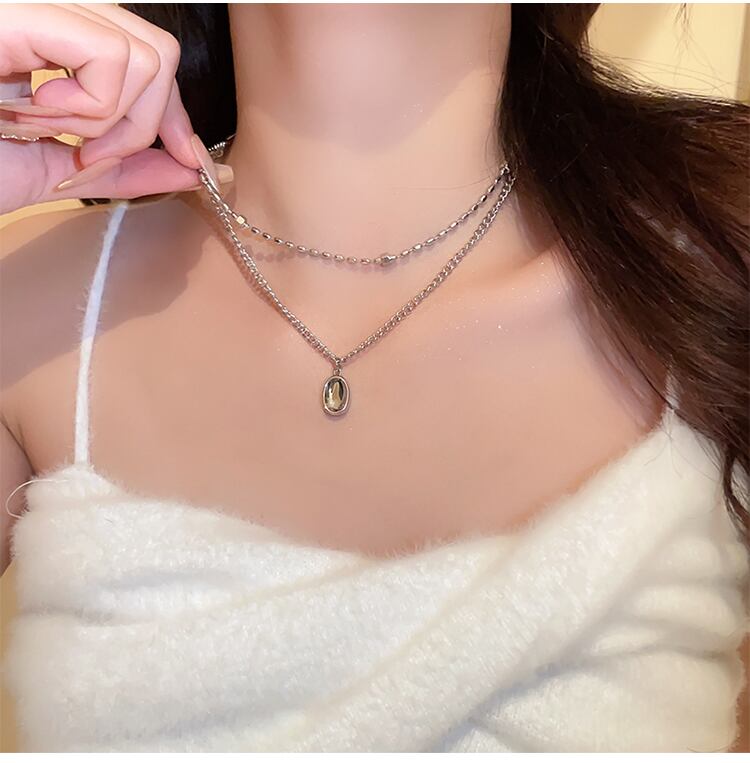 送料無料 KAITIN シルバービーンズペンダントネックレス女性 2023 スタイルの首輪チェーンライト高級シンプルな気質ネックチェーン レース 銀 AE88788753094822131