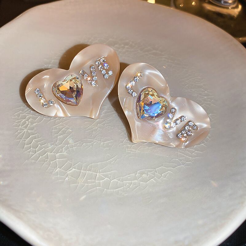 送料無料 KAITIN ラインストーンハートイヤリング女性 2023 Y2k ラブレター大イヤリング高級ジュエリーパーティーギフト 指輪 AE88788747974191388