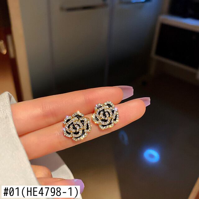 送料無料 黒の花のイヤリングシルバー針イヤリングチャーム女性イヤリングスタッド珍しいラインストーンジュエリー韓国ガールアクセサリー ブラック 指輪 フラワーデザイン 銀 AE88788771684166109