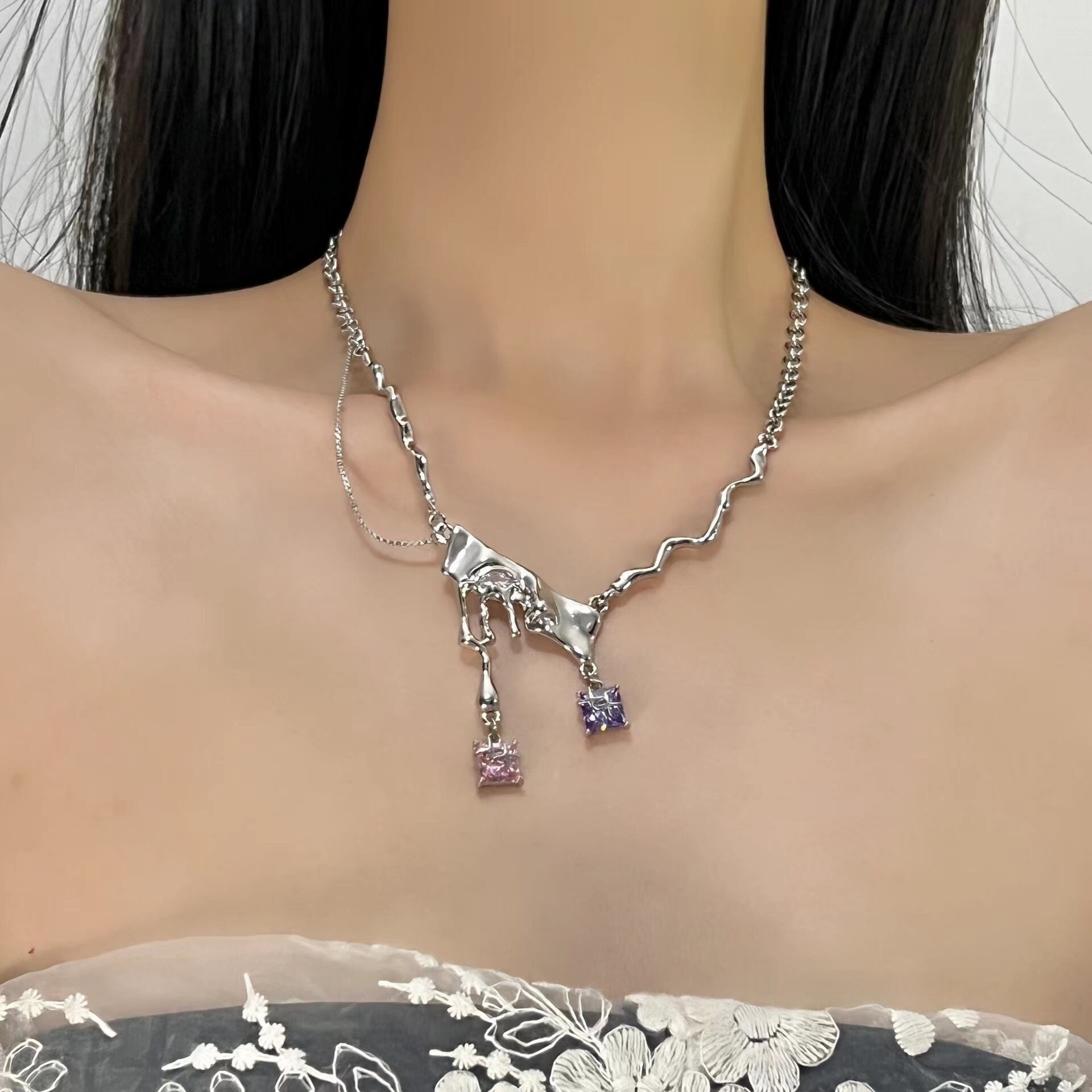 送料無料 KAITIN ジルコンマングスターネックレスパーソナライズされたセンスカラーチェーンライト高級多用途ネックウェアフリー船 レース AE88788757001621310