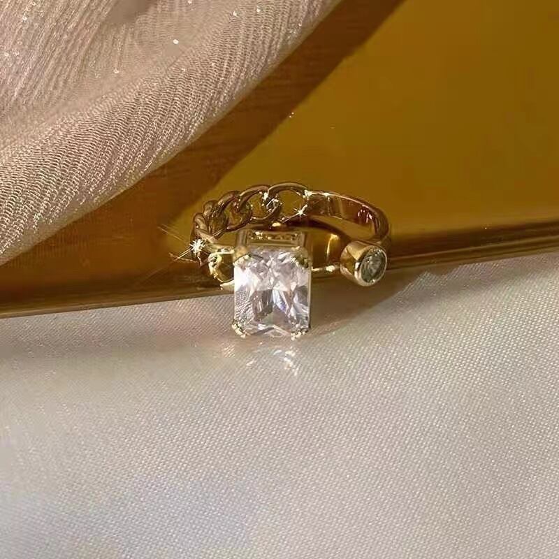 送料無料 KAITIN スクエアジルコンオープンリング女性カットアウト多用途人差し指リングライト高級手の飾りゴールドメッキジュエリー 指輪 スクウェア AE88788758753893179