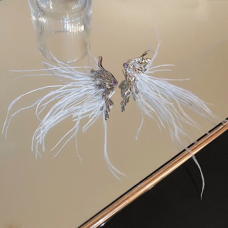 送料無料 KAITIN シルバー針プリーツ蝶の女性のイヤリングパーソナライズされたイヤリング不規則なダイヤモンドガールギフトフェザーメタルジュエリー 指輪 銀 AE8878877303250305