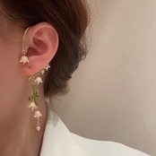 送料無料 KAITIN 花パール電話耳クリップイヤリング女性女の子非ピアスイヤーカフイヤーフックイヤリングパーティーウェディングギフト 真珠 指輪 フラワーデザイン AE88788793103596089