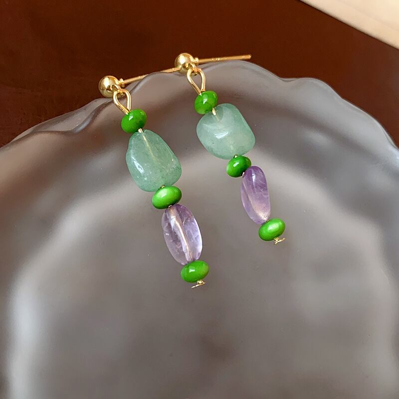 送料無料 KAITIN 不規則な翡翠クリスタルビーズイヤリング女性中国風のライト高級女性イヤリング 2023 ジュエリートレンド 指輪 ジェード ヒスイ AE88788729455957713