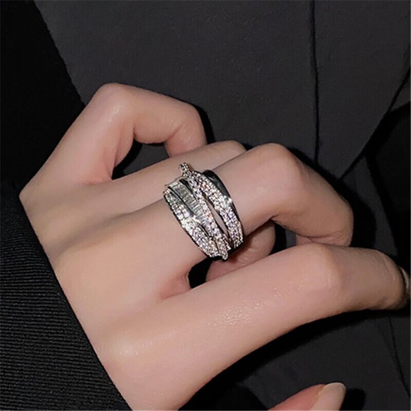 送料無料 KAITIN 高級メタルクロス中空アウトモザイククリスタルジルコンオープンリング女性の指ジュエリーアクセサリー 指輪 AE88788763757302736
