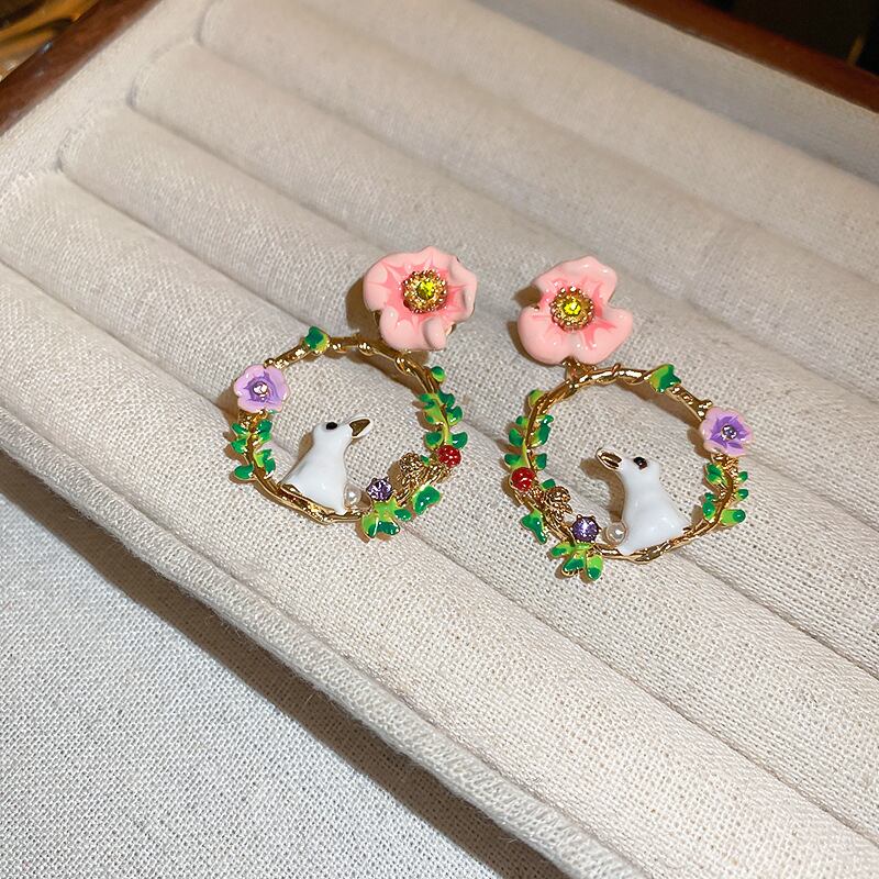 送料無料 KAITIN ダイヤモンドパールフラワーウサギのイヤリング女性甘いイヤリングかわいい田舎スタイルのジュエリーギフト 大人ガーリー スウィート キュート カジュアル 真珠 指輪 フラワーデザイン AE887887305242647