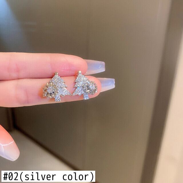 送料無料 光沢のあるクリスマスツリー雪片イヤリング女性ジルコンラインストーンスタッドイヤリングフェスティバル耳ジュエリー年クリスマスギフト 指輪 AE88788778720653670
