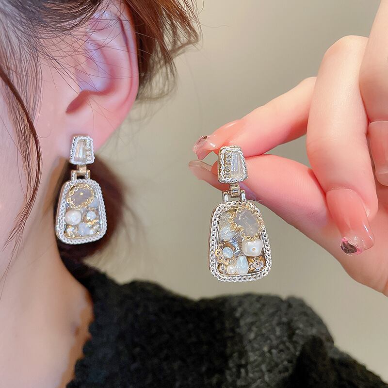 送料無料 KAITIN ダイヤモンドクリスタルパール幾何学的な女性のイヤリングフレンチヴィンテージライト高級イヤリングパーソナライズされたジュエリー 真珠 指輪 ビンテージ AE88788743593899035