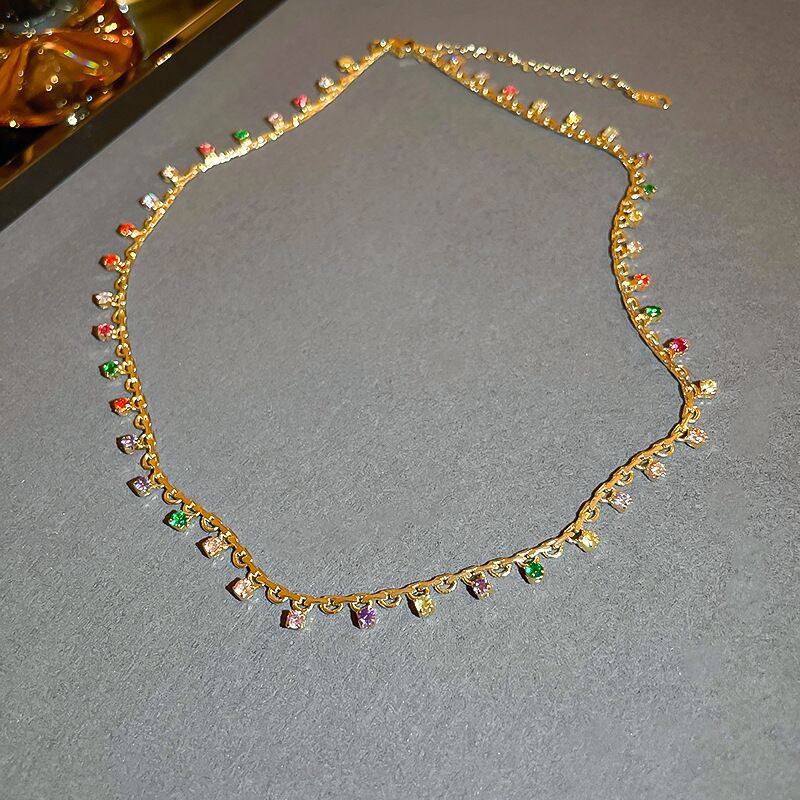 送料無料 KAITIN ジルコンカラーエナメルクラフト女性ネックレスライト高級首輪チェーン気質ネックレス レース AE88788746532796294