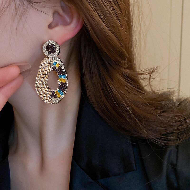 送料無料 KAITIN 中空プリーツクリスタル幾何学的な女性のイヤリング誇張された絶妙なイヤリングパーティージュエリー 指輪 AE88788749070679431