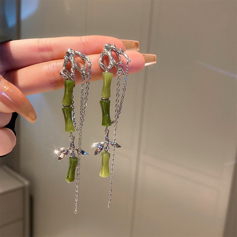 送料無料 KAITIN グリーン竹テルロングイヤリング女性ユニークなライト高級イヤリンググリーンジュエリー 指輪 AE88788778590542528