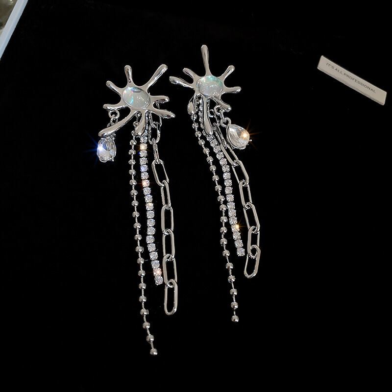 送料無料 KAITIN 不規則な幾何学的なメタルクリスタルイヤリング女性ロング Tels 人格ラインストーンイヤリングジュエリー 指輪 AE88788752383114739