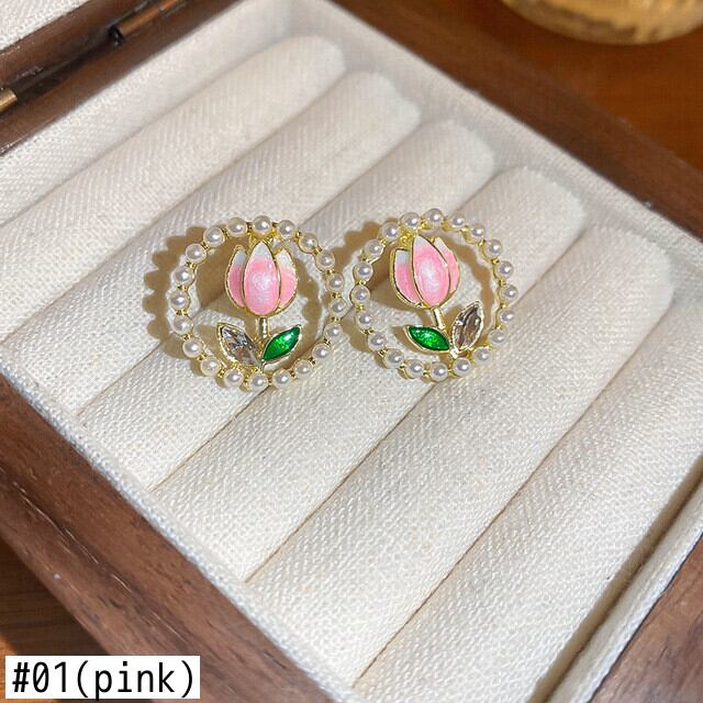 送料無料 KAITIN ダイヤモンドバロックパールサークルイヤリング女性パーソナライズチューリップフラワークリエイティブスタッドピアス通勤デイリージュエリー 真珠 指輪 フラワーデザイン AE88788776368336165
