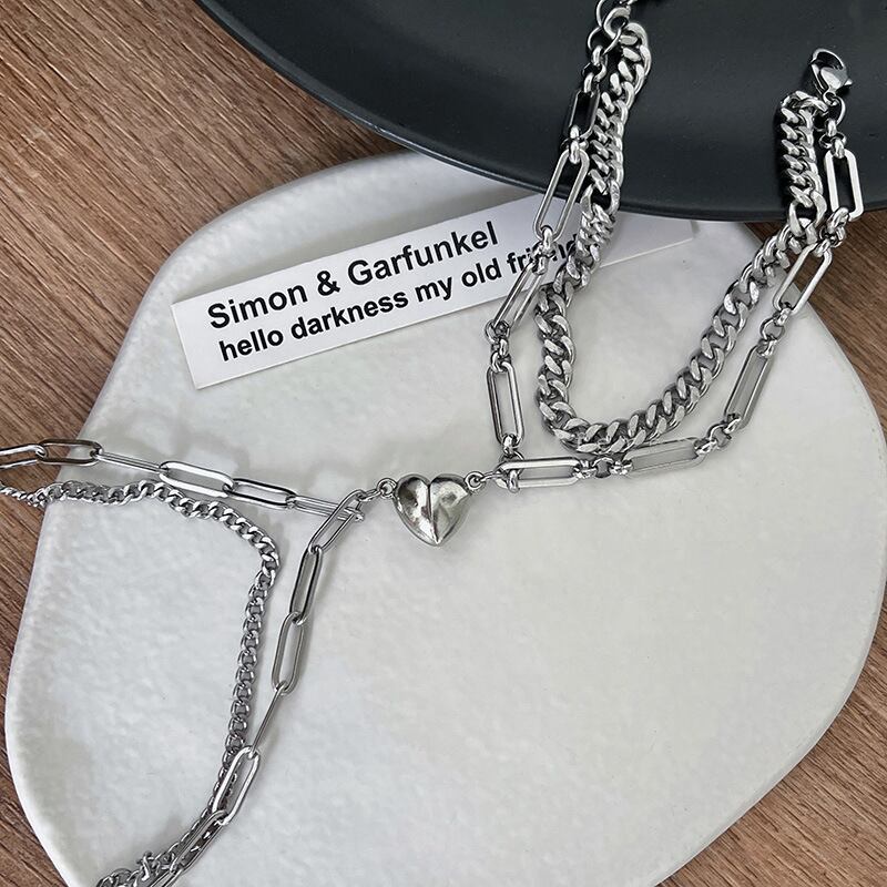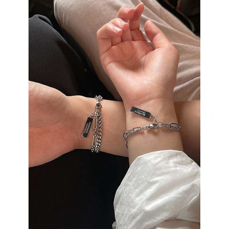 送料無料 KAITIN カップルの磁気ブレスレット女性チタン鋼ハートニッチのトレンディな折りたたみガールフレンドブレスレットのペア AE8878873556938007