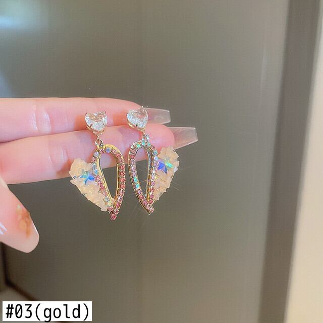 送料無料 KAITIN ダイヤモンドがちりばめられたクリスタルハートイヤリング手作りプレミアムスター女性イヤリングライト高級ジュエリー 指輪 AE8878879776376311
