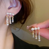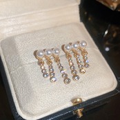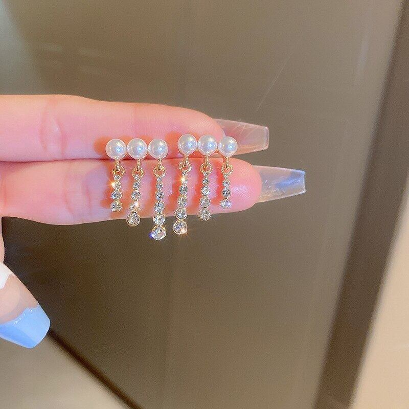 送料無料 KAITIN 真珠のイヤリング女性ミニマリスト分割象眼細工のラインストーン Tel ブラブライヤリング気質チャームジュエリー パール 指輪 AE88788785451469929