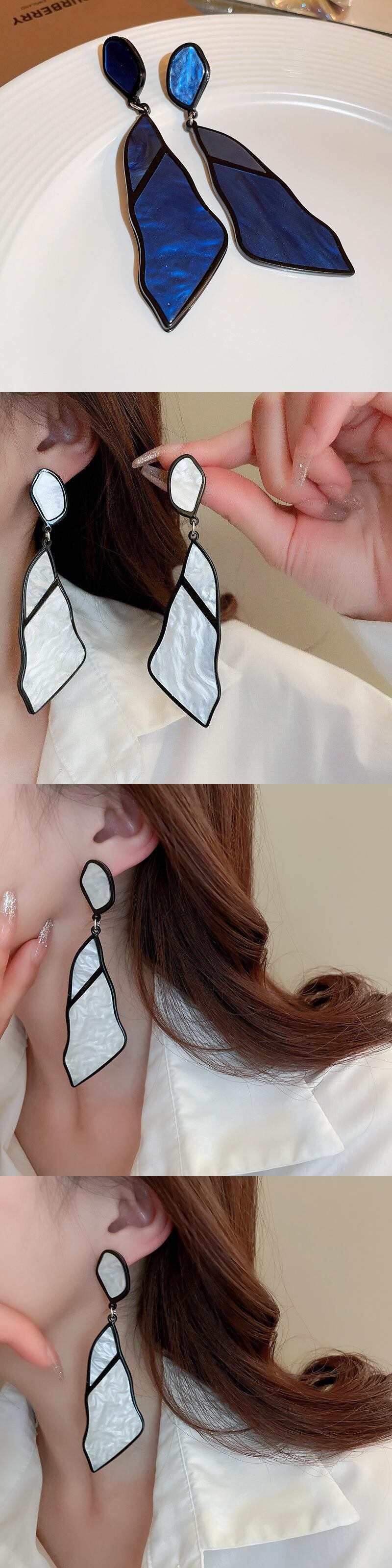 送料無料 KAITIN シルバー針幾何学的な不規則なイヤリングアクリルライト高級気質イヤリングパーティーギフト 指輪 銀 AE88788737731679310