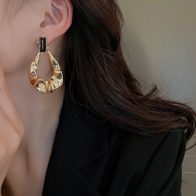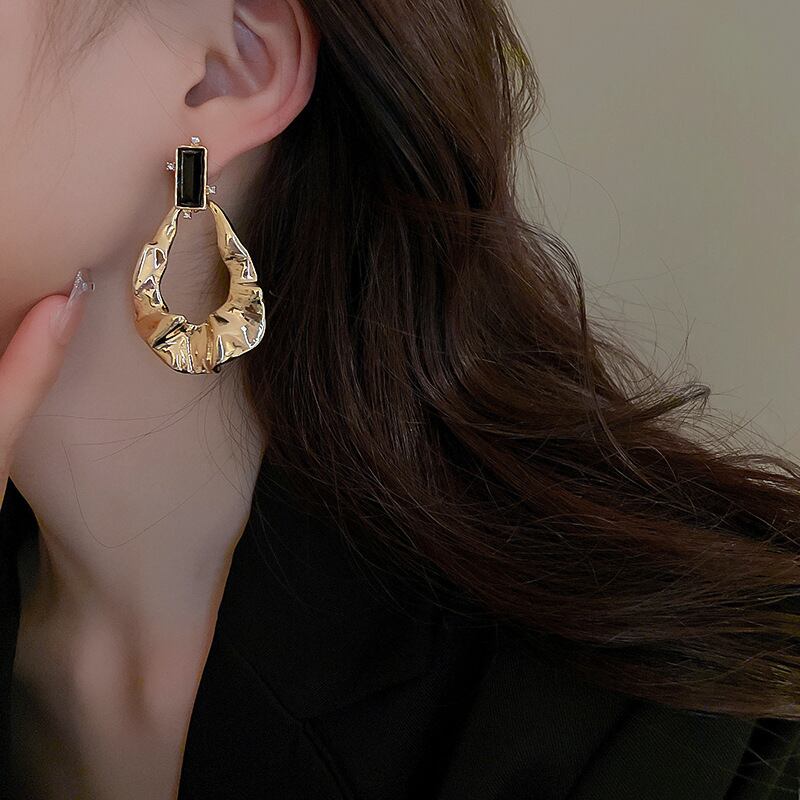 送料無料 KAITIN ダイヤモンド象嵌不規則な女性のイヤリング誇張感覚幾何学的なイヤリング金属プリーツジュエリー 指輪 AE88788775711470870
