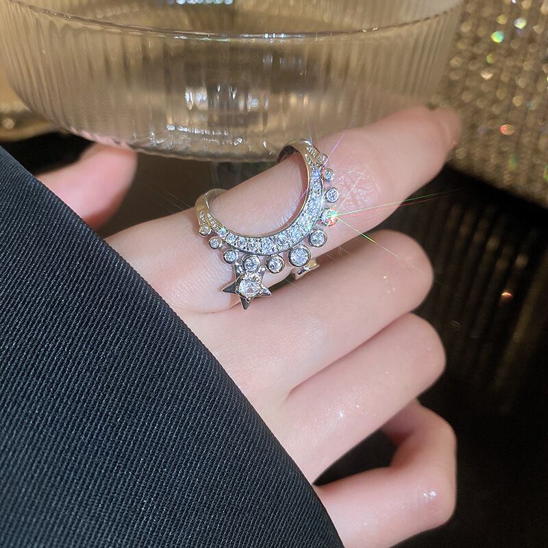 送料無料 KAITIN ジルコン五芒星中空女性リングムーン二層人格オープンリングジュエリー 指輪 AE88788777220106605
