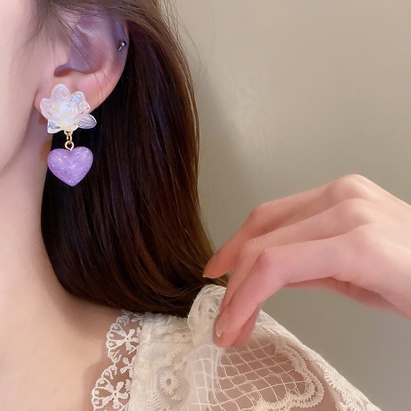 送料無料 KAITIN フラワーハート女性イヤリング甘い気質シルバー針イヤリング女性ジュエリーパートガール 大人ガーリー スウィート キュート カジュアル 指輪 フラワーデザイン 銀 AE88788731843260255