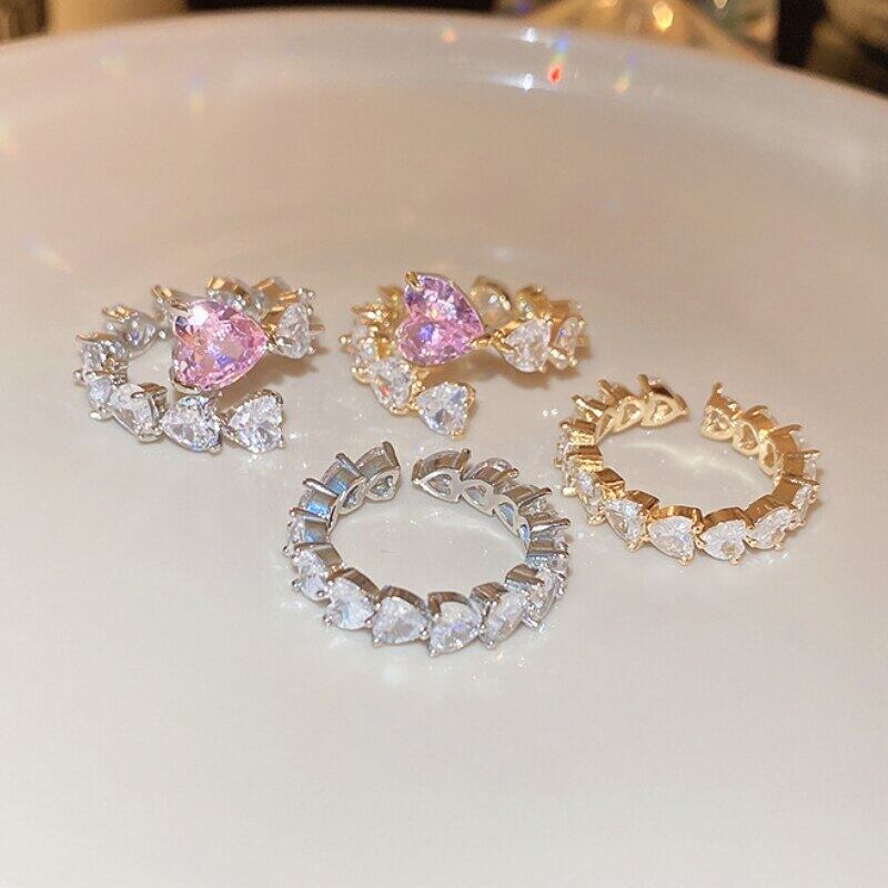 送料無料 KAITIN ゴールド電着ジルコンハートオープンリング女性通勤トレンド人差し指女性リング多用途グレードハンドウェア 指輪 AE88788782779965895