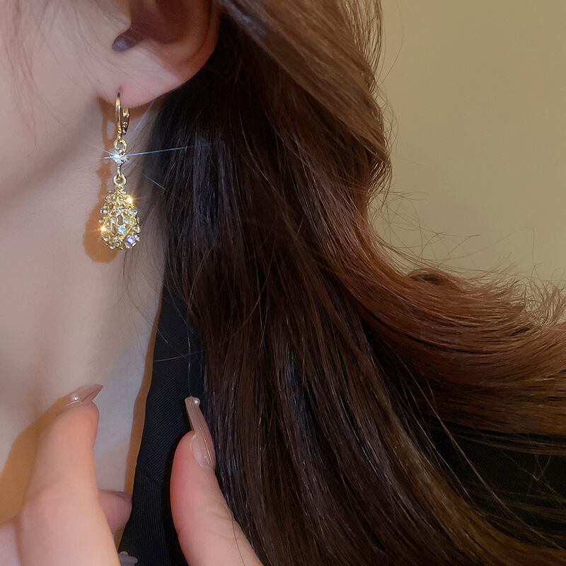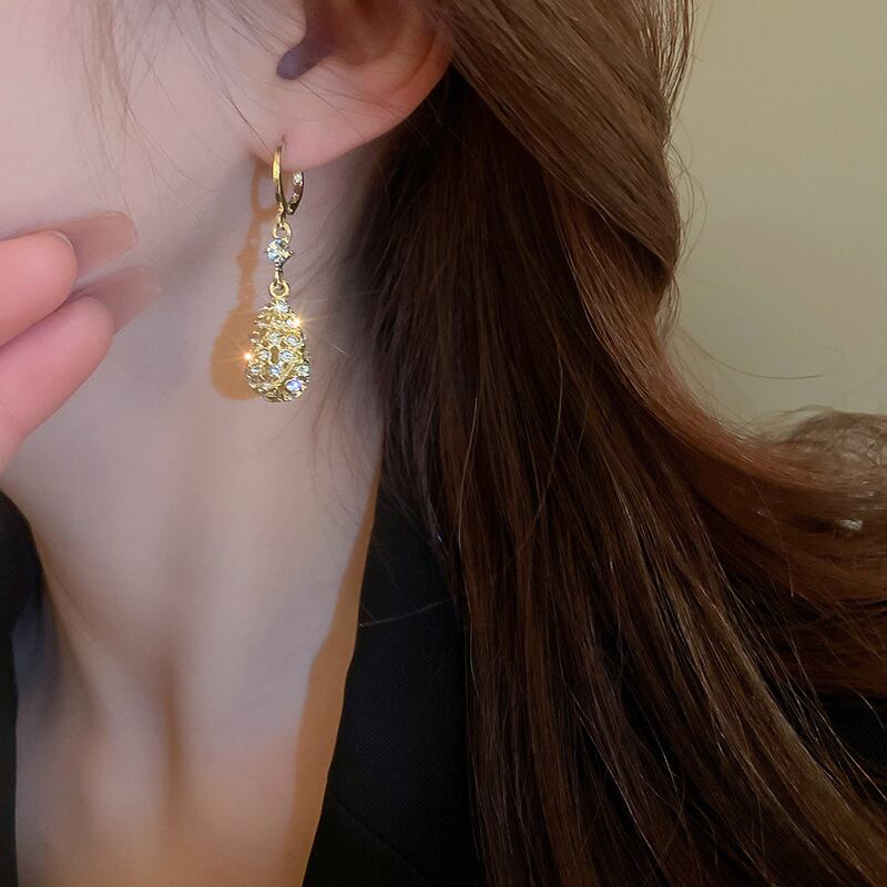 送料無料 KAITIN ダイヤモンド象嵌中空水女性イヤリング可能な金属イヤリング気質女性ジュエリー 指輪 AE88788735004195779