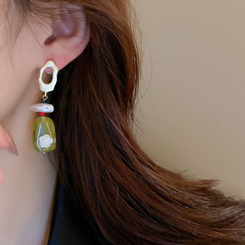 送料無料 KAITIN 中空幾何学パール樹脂電話イヤリング女性シルバー針女性ブラブライヤリングフラワージュエリー 真珠 指輪 フラワーデザイン 銀 AE88788763417531163