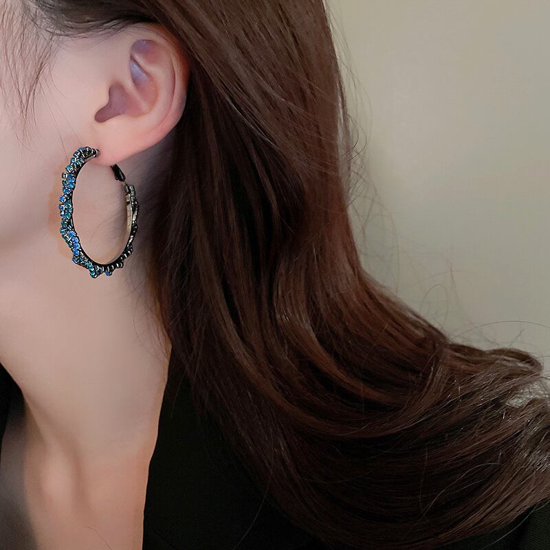 送料無料 KAITIN 象嵌ラインストーンサークルイヤリング女性誇張された高度なイヤリングパーソナライズされたライト高級イヤリング 指輪 AE88788733900154918