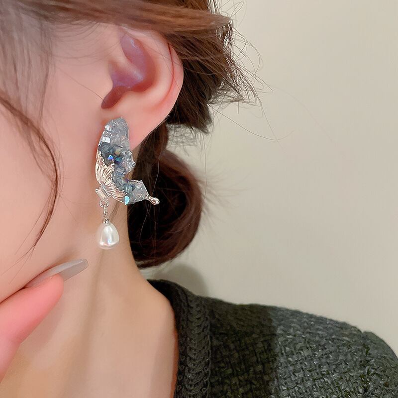 送料無料 KAITIN 象嵌クリスタル蝶ウォーターパールイヤリング女性の気質イヤリングイヤリング 真珠 指輪 AE88788795304730573