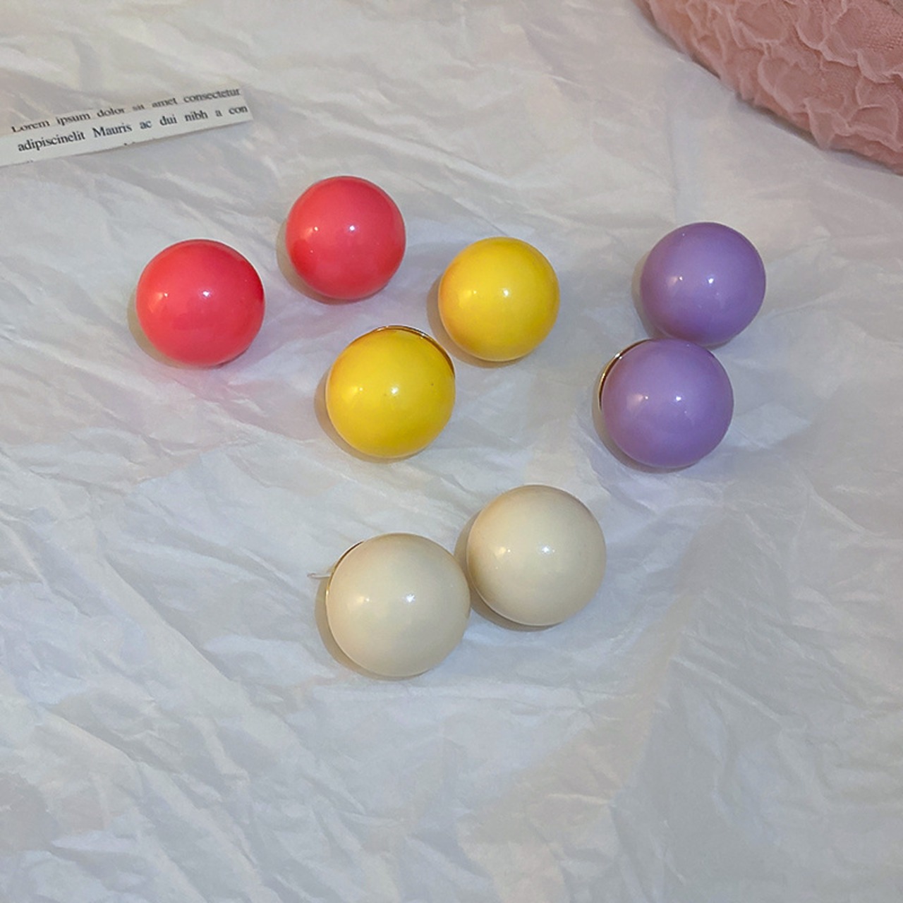 送料無料 KAITIN ラウンドボールイヤリング女性シルバー針人格シンプルなキャンディーカラーのスタッドピアス気質ガールジュエリー 指輪 銀 AE88788797671659172