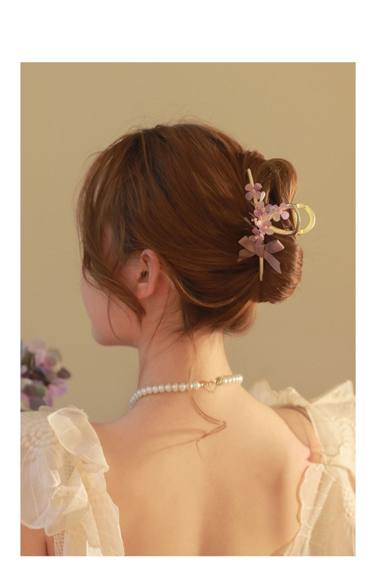 送料無料 KAITIN パールクリスタルちょう結びフラワーヘアジュエリー女性後頭部カーリーヘアクリップ多用途ヘアアクセサリー リボン 真珠 フラワーデザイン AE88788794356596447