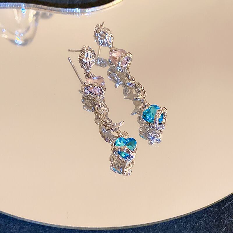 送料無料 KAITIN ブルーピンク象嵌ラインストーンハートイヤリング女性プリーツムーンイヤリング高級ジュエリー 指輪 AE88788788758568495